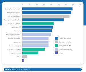 Blickt man auf die Ergebnisse, so zeigen sich folgende große Linien: Zum einen ist KI im Alltag der Bildungsmanger:innen und -expert:innen endgültig angekommen: „This year L&D passed an inflexion point, with over half of survey respondents now saying they use AI.“ Das ist wenig überraschend.