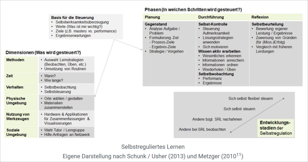 „Hinter dem Begriff „selbstreguliertes Lernen“ verbirgt sich mehr als wir üblicherweise im Blick haben“, schreibt Christoph Meier. Und er zeigt am Beispiel der Reflexionen eines Studierenden und eines Modells des selbstregulierten Lernens, welche Gestaltungsaspekte hier mitgedacht werden müssen – von der Methodenauswahl bis zur Steuerung sozialer Prozesse. Eigentlich verdient dieser Beitrag von Christoph Meier eine längere Würdigung, aber die muss ich auf einen späteren Zeitpunkt verschieben.