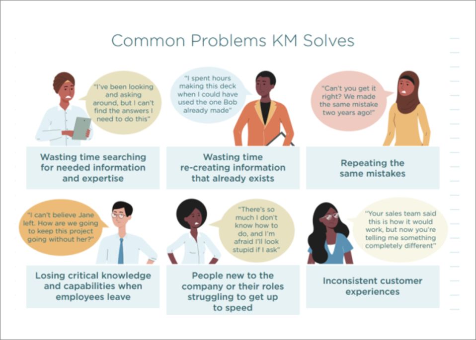Auf den Seiten der APQC (American Productivity & Quality Center) findet sich dieser Eintrag, der kurze Antworten und Beschreibungen für die liefert, die mit Wissensmanagement noch nicht in Berührung gekommen sind:
