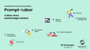 „Das Prompt-Labor hat über die Sessions hinaus aber auch eine Reihe von Tools und Ressourcen hervorgebracht: Dies sind zum einen der Moodle-Kurs und die Workbooks, die in jeder Live-Session als Arbeitsgrundlage dienten. Sie enthalten Arbeitsanweisungen und vorgegebene Prompts, als Vorlage für Modifikation und die Anwendung auf eigene dienten.
