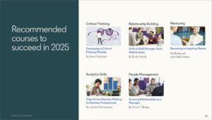 Es gibt dann noch eine Seite im Report, die als „Bonus“ gekennzeichnet ist: „Recommended courses to succeed in 2025“. Aber auch hier habe ich nichts Aufregendes entdecken können.