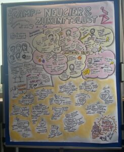 Am Freitag/ Samstag hat die zweite Auflage des Camps für Neugier und Zukunftslust stattgefunden. Wieder im malerischen Bamberg. Es waren knapp 50 Teilgeber:innen, die in 18 Sessions am Samstag sehr unterschiedliche und interessante Themen angeboten haben. Christian Kaiser und ich haben das fortgeführt, was wir auf dem Corporate Learning Camp eine Woche zuvor in Hamburg begonnen hatten: eine Vernetzung der beiden Communties oder genauer: „Corporate Learning Community meets Botschafter:innen des Ministeriums für Neugier und Zukunftslust“.